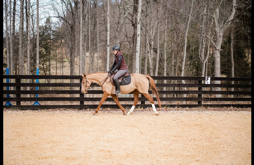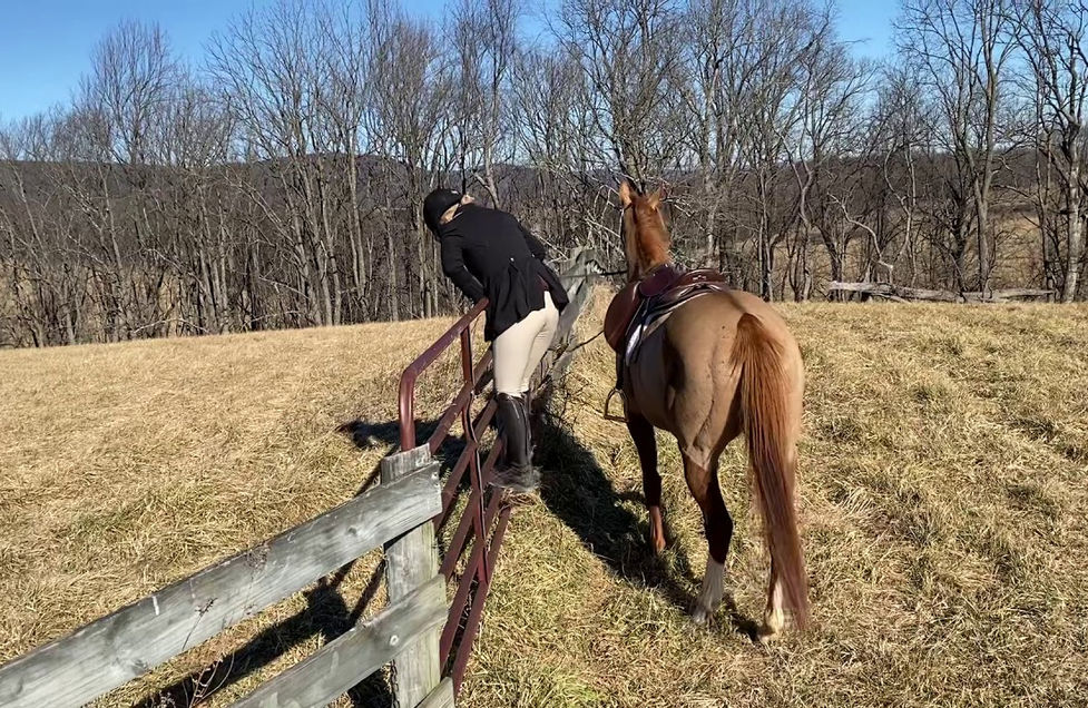Britches is a 2016 nearly 15 hand off the track thoroughbred mare who retired in 2019 after 9 starts (JC Silver Analyst). After being let down for a year, she has been a total joy to restart this winter. She is happy to ride in the arena and outside, alone or with company. She is confident across a variety of terrains including ditches and creeks. Britches has begun hilltopping with the Glenmore Hounds in Augusta, County. She is an uncomplicated ride in the hunt field, very sure footed and completely comfortable being surrounded by the pack of hounds. She has a very comfortable long trot that makes traveling across the country a breeze. She is the epitome of an amateur friendly horse and has an in-your-pocket personality with a lovely young curiosity about her, making her a farm favorite. With a natural balance and rhythm in all three gaits, she has quickly and confidently taken to lightly being started over fences and she is a very comfortable and uncomplicated young horse to ride. Britches would be best suited for an adult amateur or even a junior interested in producing a young horse in any direction.